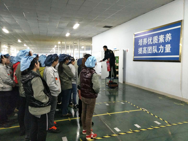 2017年12月14日制造中心邀請德州市社安消防中心老師對全公司職工進行消防安全知識培訓及實地演習。■ 消防理論知識培訓。