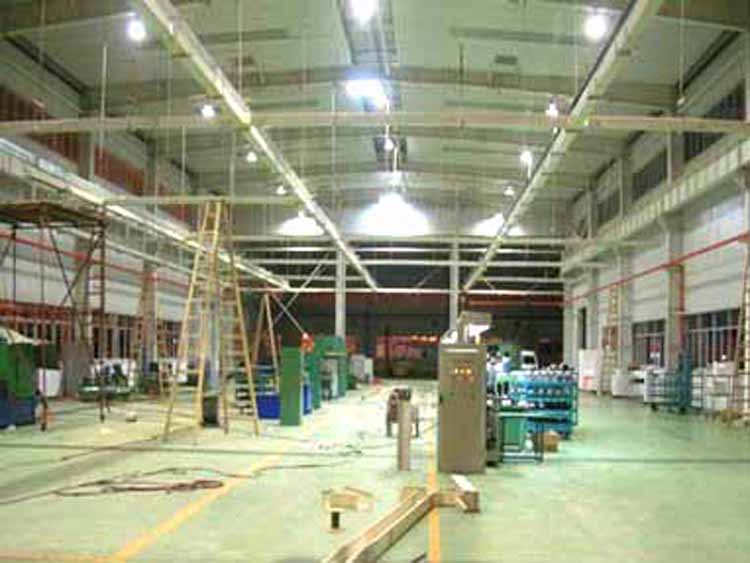 該車間照明燈用75W氙燈替換原250W鈉燈,可以讓工人很自然的辨別貨物的顏色,減少疲勞度,降低誤操作率,無頻閃,可以使在此光線下工作的人員幾乎不產生視覺疲勞,可以重復熱啟動,車間使用即節能又方便。